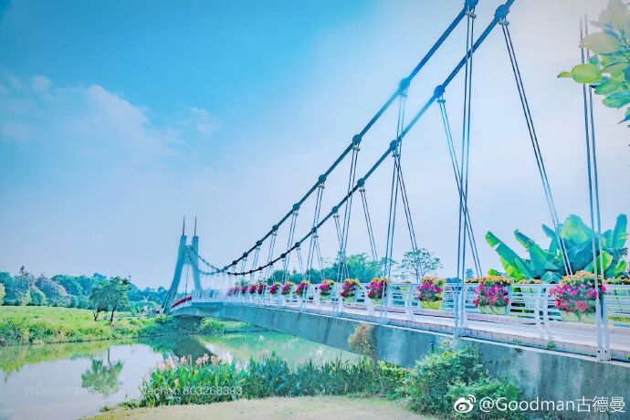 海珠湿地的资深粉丝肯定知道,飞龙桥是必不可少的一个打卡点。横跨在碧波绿水上的飞龙桥,由绳索牵引,宛如浮在水面的帆船。