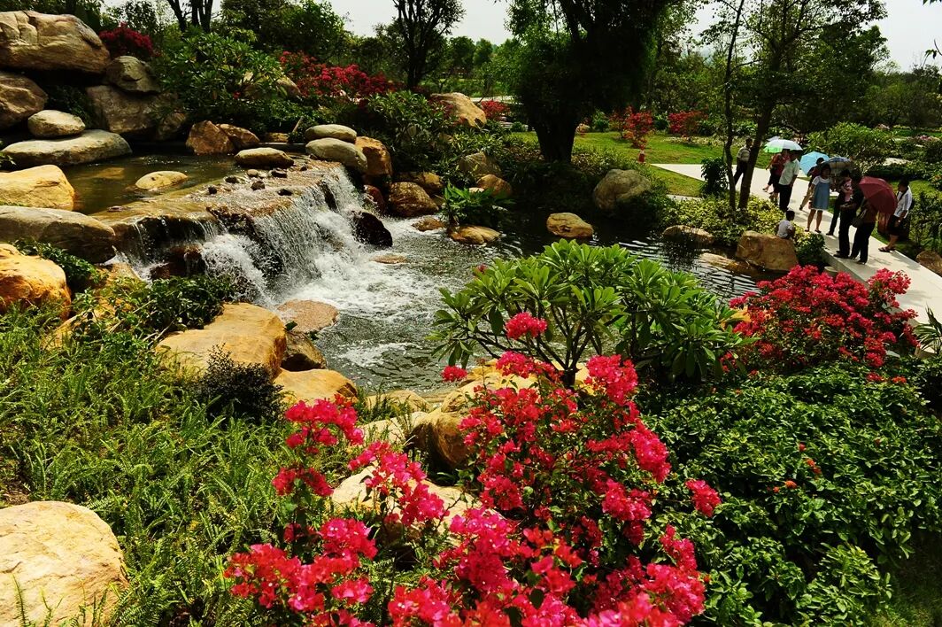“浅水之中潮湿地,婀娜芦苇一丛丛;迎风摇曳多姿态,质朴无华野趣浓”。花溪区繁花似锦,植物采用开花植物与常绿植物搭配的形式,结合溪边的水生植物,以达到春夏秋冬可四季观花的效果。